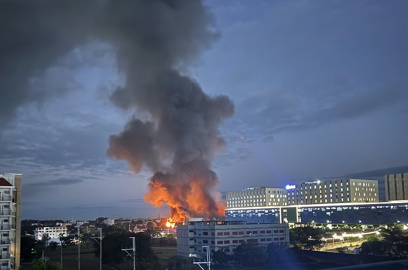 今回の出張時にホテルの近くで起きた火事です。朝方にサイレンの音で起こされて、眠りに戻ろうと思ってもいつまでも止まず、どんどんサイレン音が増えてきたのでカーテンを開けて外を見たら大きい火が見えました。